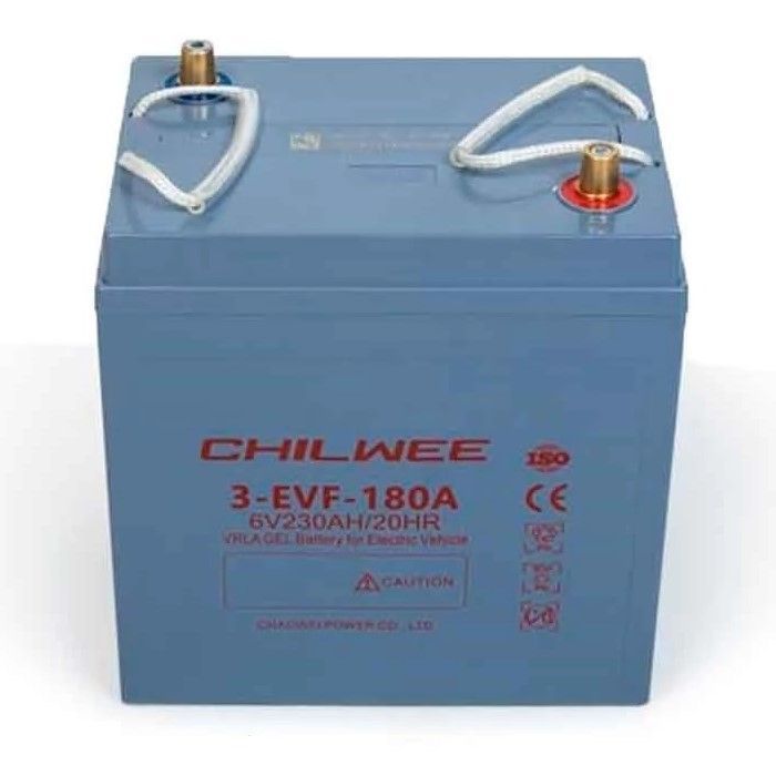 Тяговый аккумулятор Chilwee 3-EVF-180A (ёмкость 200 Ач (по C5), напряжение 6 вольт) изготавливается с применением технологии GEL, электролит представляет собой желеобразную массу. Гелевые батареи имеют большую теплоотдачу, повышенную устойчивость к глубоким разрядам. Аккумулятор является полностью герметизированным и необслуживаемым. Он не требует долива воды в процессе эксплуатации (в сравнении с классическими тяговыми аккумуляторами по технологии WET) и дополнительных усилий со стороны пользователя.