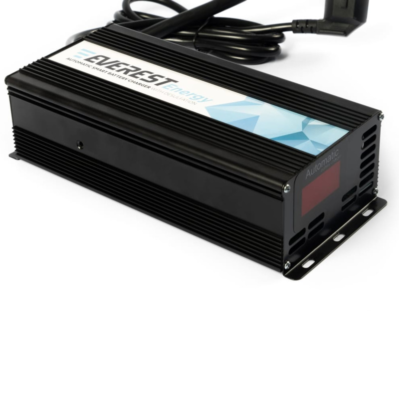 Мощное зарядное устройство Everest Energy EVE-24-20 с напряжением 24 В и током 20 А идеально подходит для зарядки тяговых аккумуляторных батарей, используемых в поломоечных машинах, штабелерах и электро-тележках. Устройство поддерживает аккумуляторы типа AGM и GEL и отличается особенной функцией десульфатации, которая позволяет эффективно разрушать сульфаты на пластинах аккумулятора, восстанавливая и продлевая его срок службы. Передовая технология MCU (Microcontroller Unit) обеспечивает полностью автоматизированный процесс зарядки.