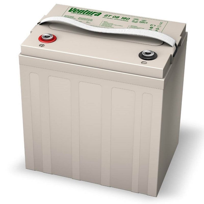 Ventura GT 08 180 М8 - тяговый аккумулятор Ventura General Traction (GT) является специализированным необслуживаемой батареей, выполненной по технологии VRLA AGM (Absorbent Glass Mat) - АКБ с электролитом иммобилизованным в сепараторах из стекловолокна. Cерия GT разработана специально для использования в циклическом режиме работы – в тяговых приложениях. Ventura GT идеально подходит для работы в полоуборочной технике, подъемном оборудовании, электроколясках, электромобилях и гольф-карах, а также в ИБП, где предполагается интенсивное циклирование и прочем подобном.