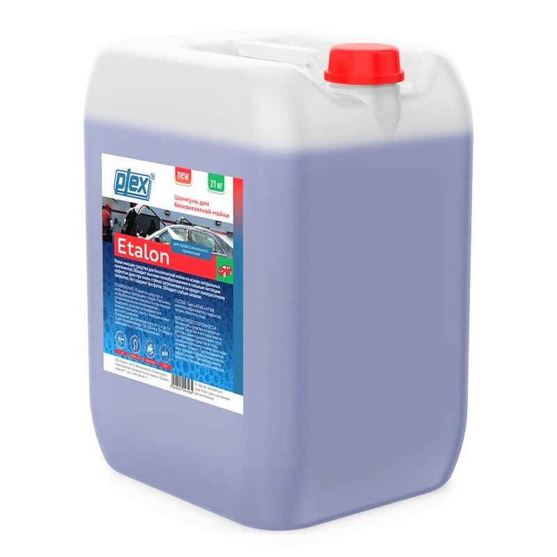 Plex Etalon - средство для бесконтактной мойки емкостью 21 кг. Моющее средство для бесконтактной мойки на основе натуральных компонентов. Обладает высоким пенообразованием и сильным чистящим эффектом даже при очень стойких загрязнениях и не вредит лакокрасочному покрытию. Не содержит фосфатов.